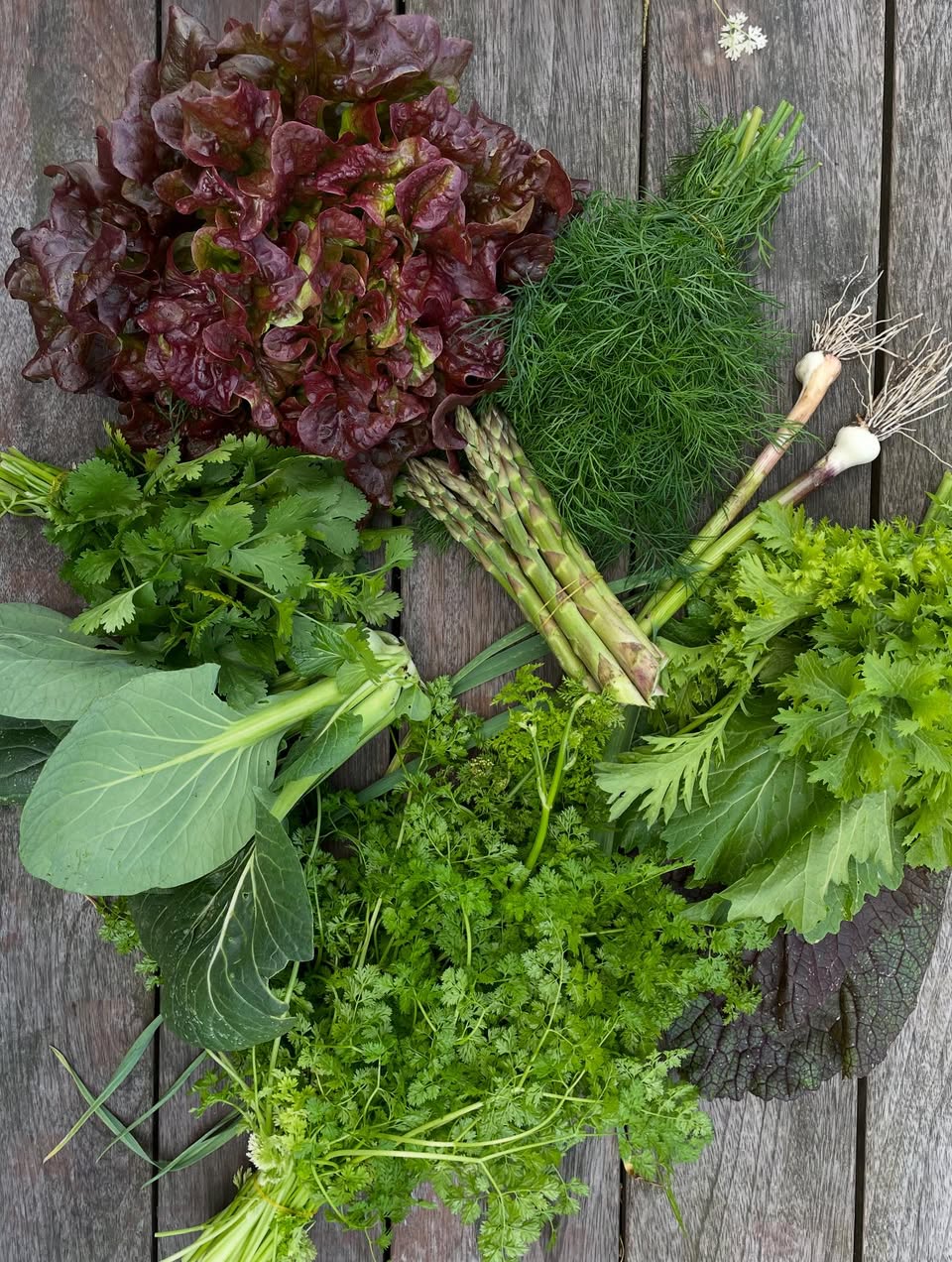 I maj kan høsten fx bestå af salater, friske hvidløg, asparges, persille, radiser, pak choi og dild.